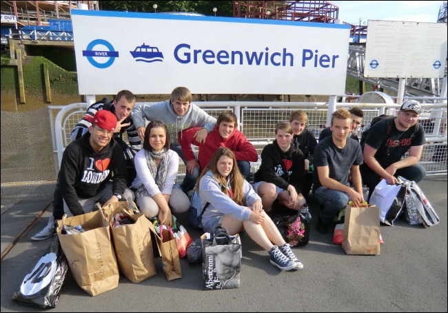 Greenwich Hey, I am going to tell you how we experienced our day in London´s city district, Greenwich on Thames. At first we took a London bus and then a riverboat from Westminster to Greenwich. What we firstly recognized was how high the double-decker busses are. As we arrived, we were allowed to spend some time on our own. We saw terrific buildings and spectacular street-acts which took place on London´s streets. Most of all, we (the girls) spent the time to go go shopping where Abercrombie & Fitch was one of the highlights. After we met at a central place at Piccadilly Circus (where we saw super-cool street-acts again). After that, we took the boat to Greenwich and went to see the Zero Meridian. For those of you who do not know, the Meridian line is an imaginary line which runs from the North Pole to the South Pole. By international convention it runs through "the primary transit" instrument (main telescope) at the Royal Observatory in Greenwich. But when we arrived at the Prime Meridian, we were not supposed to get through the gate because the Meridian was in the process of being cleaned at that point of time. After the Zero Meridian, we took the tube back through the Docklands to London City. After all, our day in London’s part Greenwich was one of the best days of our class trip, especially since we did a lot of shopping on that day, too, carrying so many bags all the way through town. I enjoyed every day and I miss that time with my wonderful English class. By Suat